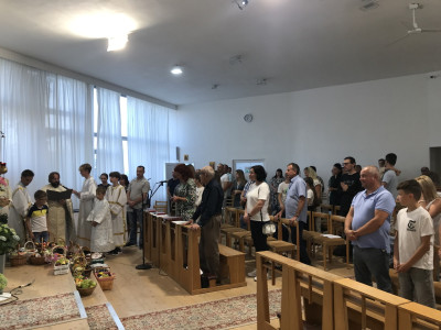 Ohlédnutí za měsícem červnem. Měli jsme 8.6. chrámový svátek, na Sestoupení Svatého Ducha, při kterém byl pokřtěn náš katechumen Jakub Izák. Současně nás v tento den navštívili bohoslovci a představení Arcibiskupského kněžského semináře. V neděli 22.6. čtyři chlapci z naší farnosti měli 1. svaté přijímání.
