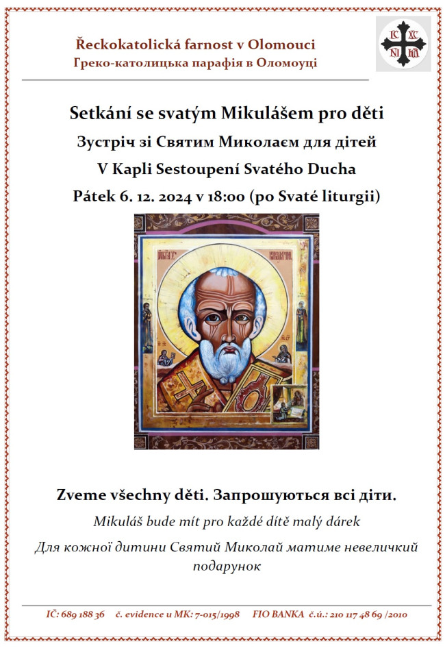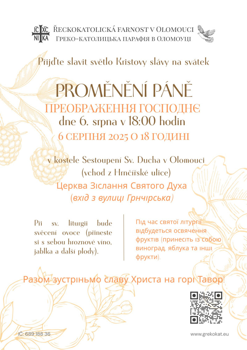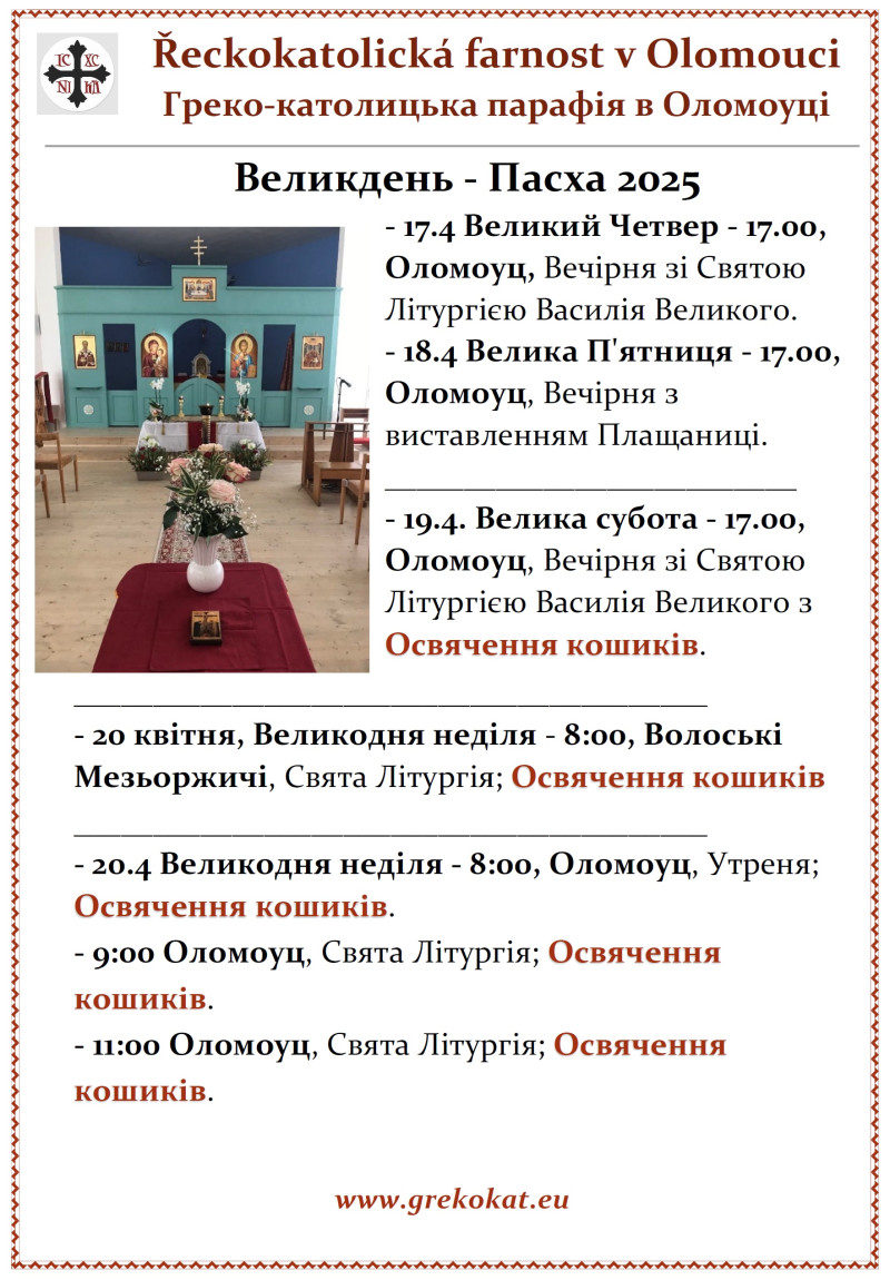 Ласкаво просимо на сайт греко-католицької парафії в Оломоуці. Наша парафія діє в районах: Оломоуц, Простейов, Пршеров і Всетін.